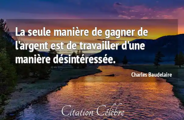 La seule manière de gagner de l'argent est de travailler d'une manière désintéressée.