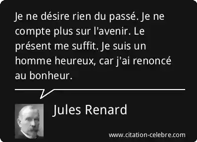 Je ne désire rien du passé. Je ne compte plus sur l'avenir. Le présent me suffit. Je suis un homme heureux, car j'ai renoncé au bonheur.