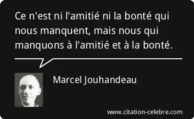 Ce n'est ni l'amitié ni la bonté qui nous manquent, mais nous qui manquons à l'amitié et à la bonté.