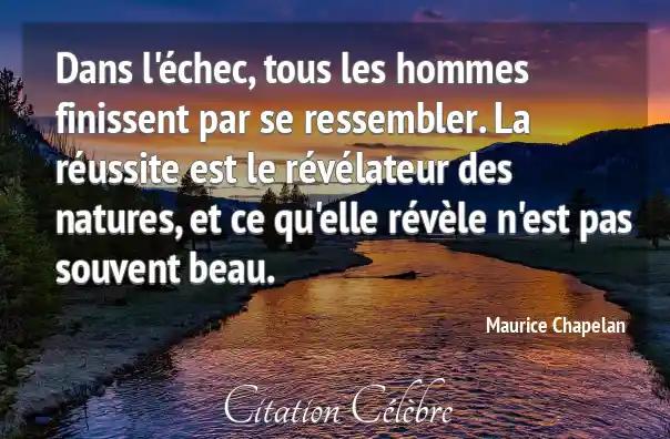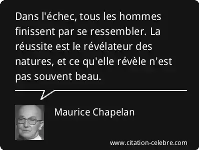 Dans l'échec, tous les hommes finissent par se ressembler. La réussite est le révélateur des natures, et ce qu'elle révèle n'est pas souvent beau.