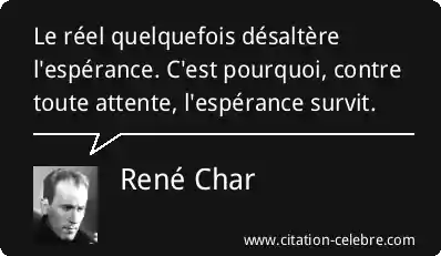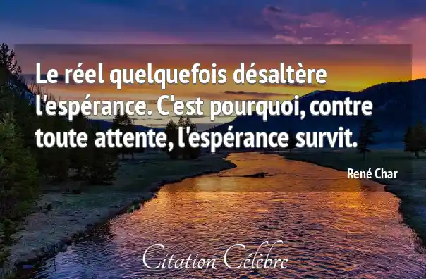 Le réel quelquefois désaltère l'espérance. C'est pourquoi, contre toute attente, l'espérance survit.