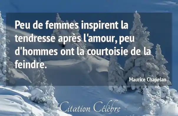 Peu de femmes inspirent la tendresse après l'amour, peu d'hommes ont la courtoisie de la feindre.