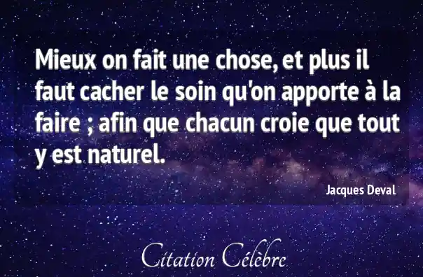 Mieux on fait une chose, et plus il faut cacher le soin qu'on apporte à la faire ; afin que chacun croie que tout y est naturel.