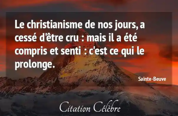 Le christianisme de nos jours, a cessé d'être cru : mais il a été compris et senti : c'est ce qui le prolonge.
