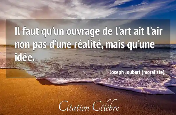 Il faut qu'un ouvrage de l'art ait l'air non pas d'une réalité, mais qu'une idée.