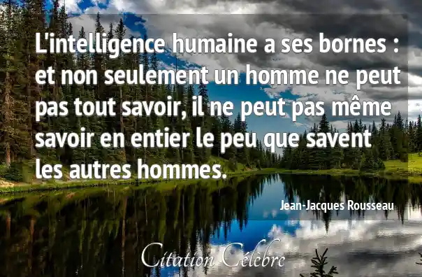 L'intelligence humaine a ses bornes : et non seulement un homme ne peut pas tout savoir, il ne peut pas même savoir en entier le peu que savent les autres hommes.