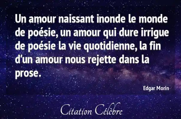 Un amour naissant inonde le monde de poésie, un amour qui dure irrigue de poésie la vie quotidienne, la fin d'un amour nous rejette dans la prose.