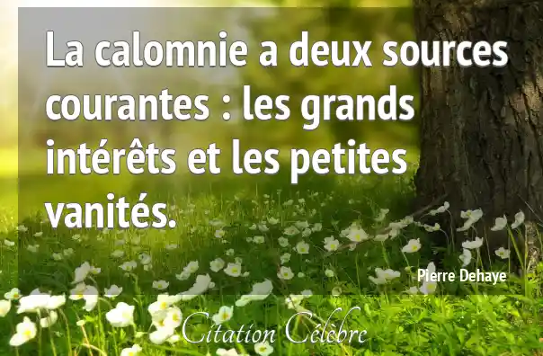 La calomnie a deux sources courantes : les grands intérêts et les petites vanités.