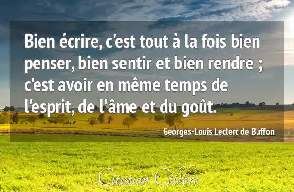 Bien écrire, c'est tout à la fois bien penser, bien sentir et bien rendre ; c'est avoir en même temps de l'esprit, de l'âme et du goût.