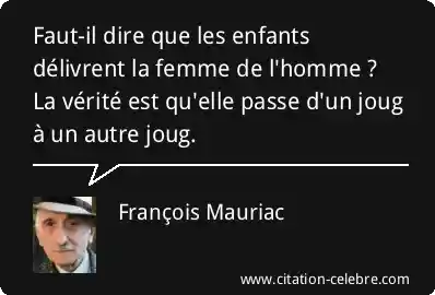Faut-il dire que les enfants délivrent la femme de l'homme ? La vérité est qu'elle passe d'un joug à un autre joug.