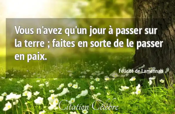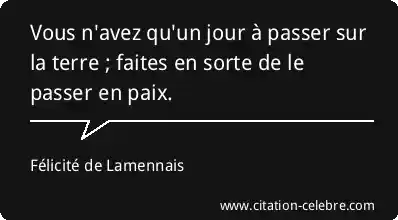 Vous n'avez qu'un jour à passer sur la terre ; faites en sorte de le passer en paix.