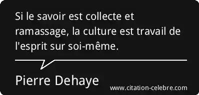 Si le savoir est collecte et ramassage, la culture est travail de l'esprit sur soi-même.