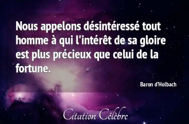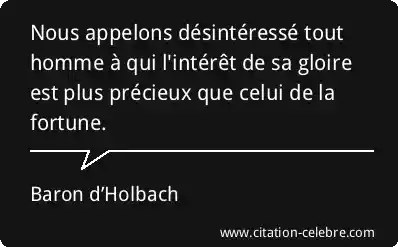 Nous appelons désintéressé tout homme à qui l'intérêt de sa gloire est plus précieux que celui de la fortune.