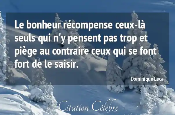 Le bonheur récompense ceux-là seuls qui n'y pensent pas trop et piège au contraire ceux qui se font fort de le saisir.
