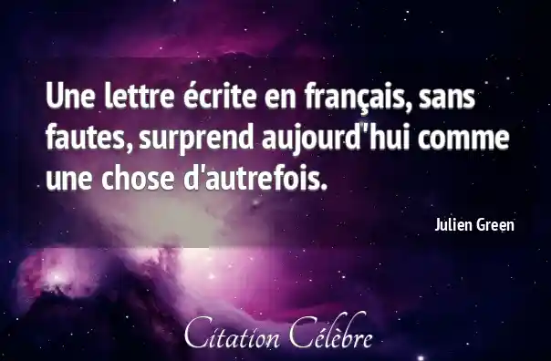 Une lettre écrite en français, sans fautes, surprend aujourd'hui comme une chose d'autrefois.