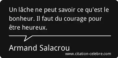 Un lâche ne peut savoir ce qu'est le bonheur. Il faut du courage pour être heureux.