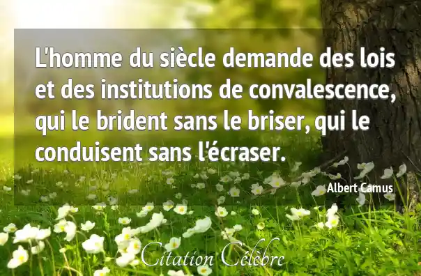 L'homme du siècle demande des lois et des institutions de convalescence, qui le brident sans le briser, qui le conduisent sans l'écraser.