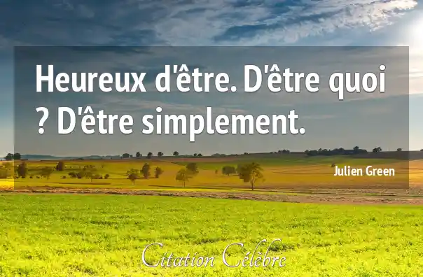 Citation Julien Green heureux : Heureux d'être. D'être quoi ? D'être simplement....