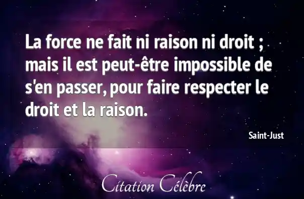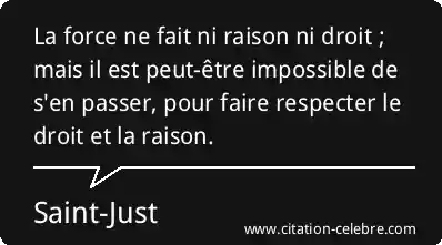 La force ne fait ni raison ni droit ; mais il est peut-être impossible de s'en passer, pour faire respecter le droit et la raison.