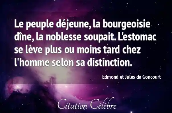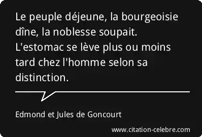 Le peuple déjeune, la bourgeoisie dîne, la noblesse soupait. L'estomac se lève plus ou moins tard chez l'homme selon sa distinction.