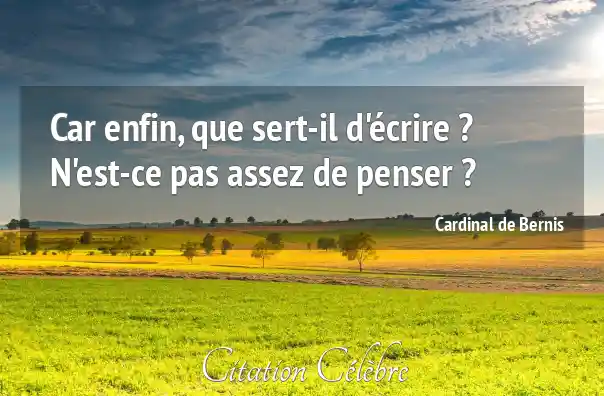 Car enfin, que sert-il d'écrire ? N'est-ce pas assez de penser ?