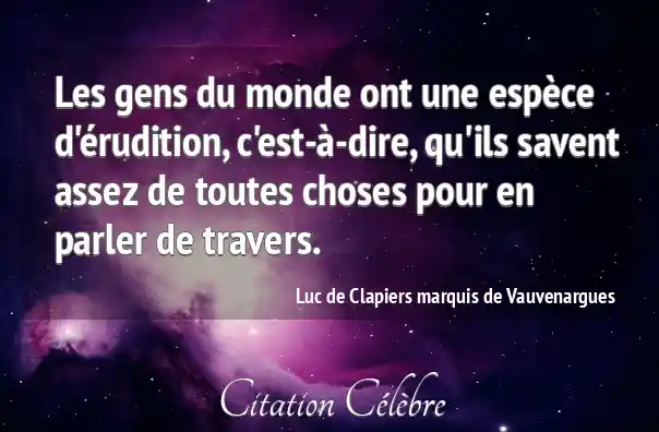 Les gens du monde ont une espèce d'érudition, c'est-à-dire, qu'ils savent assez de toutes choses pour en parler de travers.