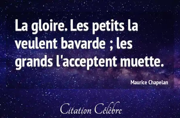 La gloire. Les petits la veulent bavarde ; les grands l'acceptent muette.