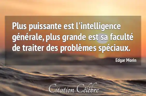 Plus puissante est l'intelligence générale, plus grande est sa faculté de traiter des problèmes spéciaux.