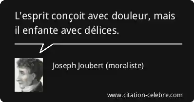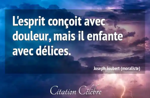 Citation Joseph Joubert (moraliste) esprit : L'esprit conçoit avec douleur, mais il enfante avec délices....