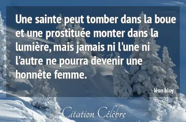 Une sainte peut tomber dans la boue et une prostituée monter dans la lumière, mais jamais ni l'une ni l'autre ne pourra devenir une honnête femme.