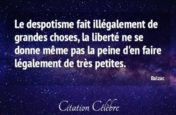 Le despotisme fait illégalement de grandes choses, la liberté ne se donne même pas la peine d'en faire légalement de très petites.