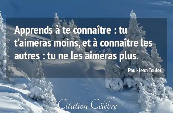 Apprends à te connaître : tu t'aimeras moins, et à connaître les autres : tu ne les aimeras plus.