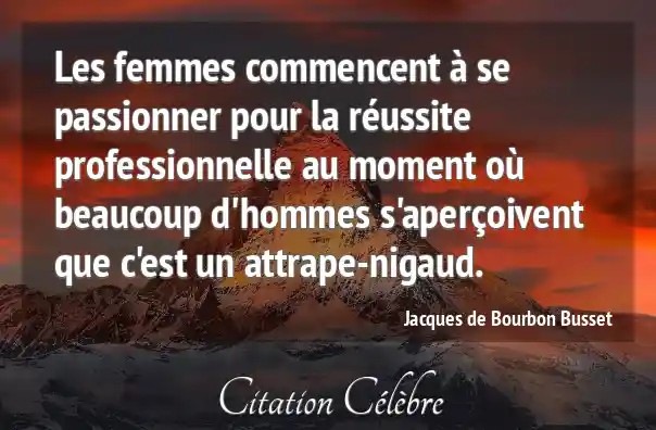Les femmes commencent à se passionner pour la réussite professionnelle au moment où beaucoup d'hommes s'aperçoivent que c'est un attrape-nigaud.