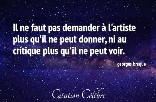Il ne faut pas demander à l'artiste plus qu'il ne peut donner, ni au critique plus qu'il ne peut voir.
