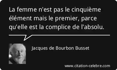 La femme n'est pas le cinquième élément mais le premier, parce qu'elle est la complice de l'absolu.