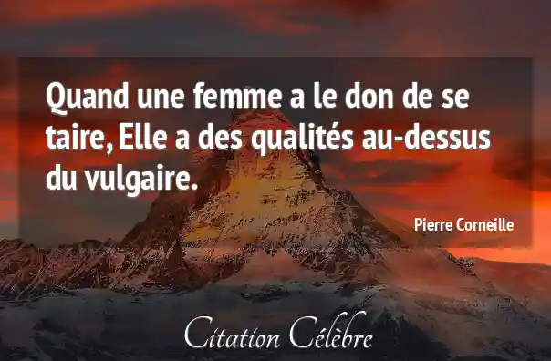 Quand une femme a le don de se taire, Elle a des qualités au-dessus du vulgaire.