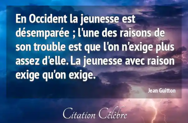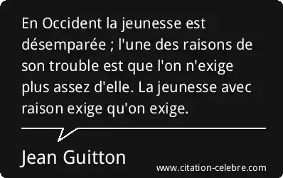 En Occident la jeunesse est désemparée ; l'une des raisons de son trouble est que l'on n'exige plus assez d'elle. La jeunesse avec raison exige qu'on exige.