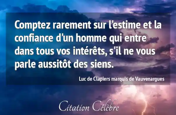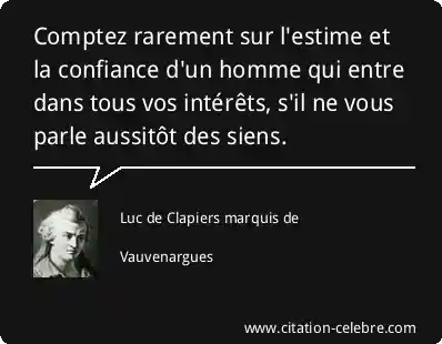 Comptez rarement sur l'estime et la confiance d'un homme qui entre dans tous vos intérêts, s'il ne vous parle aussitôt des siens.