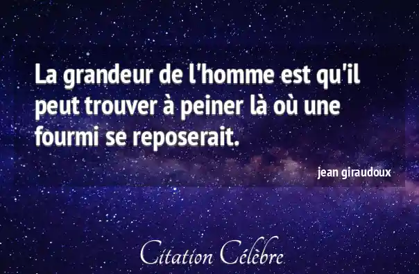 La grandeur de l'homme est qu'il peut trouver à peiner là où une fourmi se reposerait.