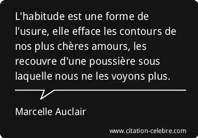 L'habitude est une forme de l'usure, elle efface les contours de nos plus chères amours, les recouvre d'une poussière sous laquelle nous ne les voyons plus.
