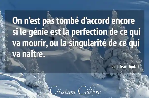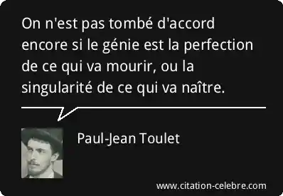 On n'est pas tombé d'accord encore si le génie est la perfection de ce qui va mourir, ou la singularité de ce qui va naître.