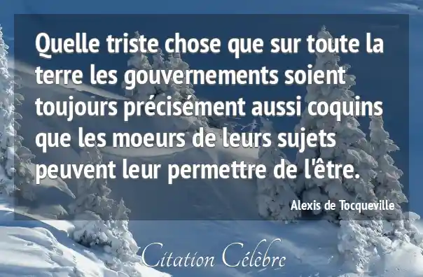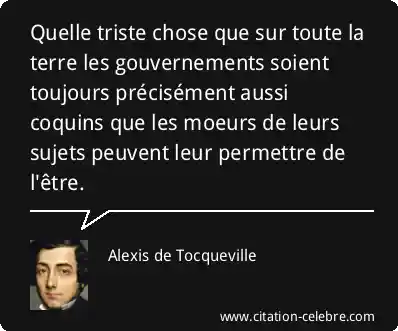Quelle triste chose que sur toute la terre les gouvernements soient toujours précisément aussi coquins que les moeurs de leurs sujets peuvent leur permettre de l'être.