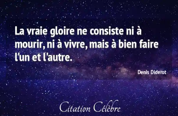 La vraie gloire ne consiste ni à mourir, ni à vivre, mais à bien faire l'un et l'autre.