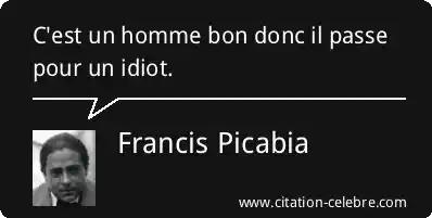 Citation Francis Picabia homme : C'est un homme bon donc il passe pour un idiot....