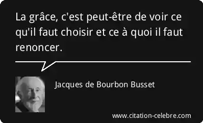 La grâce, c'est peut-être de voir ce qu'il faut choisir et ce à quoi il faut renoncer.