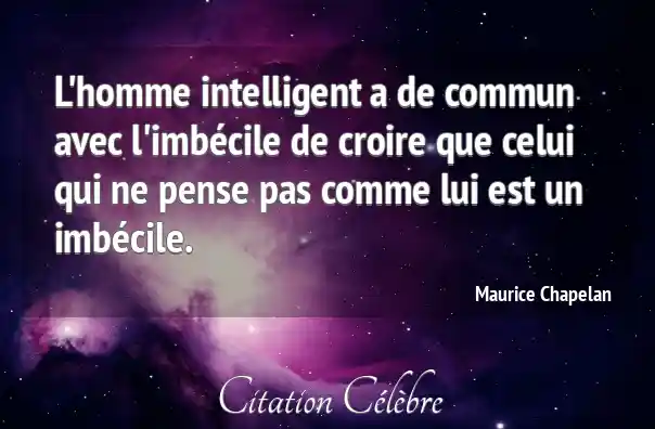 L'homme intelligent a de commun avec l'imbécile de croire que celui qui ne pense pas comme lui est un imbécile.