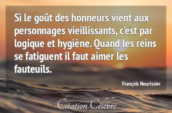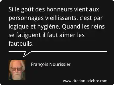 Si le goût des honneurs vient aux personnages vieillissants, c'est par logique et hygiène. Quand les reins se fatiguent il faut aimer les fauteuils.