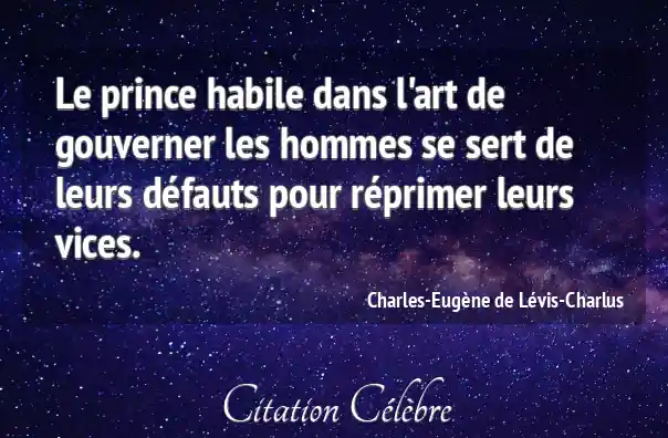 Le prince habile dans l'art de gouverner les hommes se sert de leurs défauts pour réprimer leurs vices.
