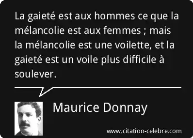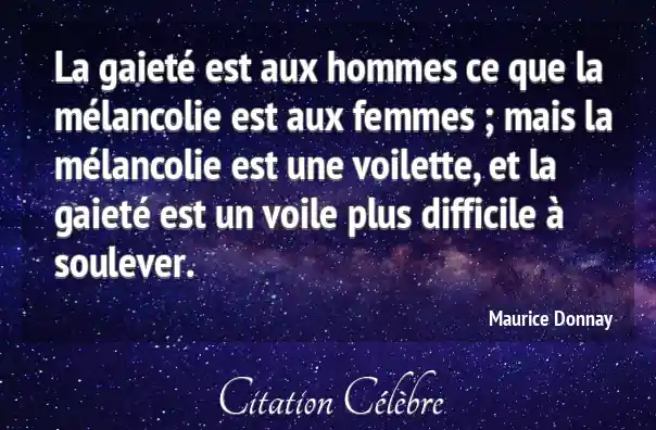 La gaieté est aux hommes ce que la mélancolie est aux femmes ; mais la mélancolie est une voilette, et la gaieté est un voile plus difficile à soulever.