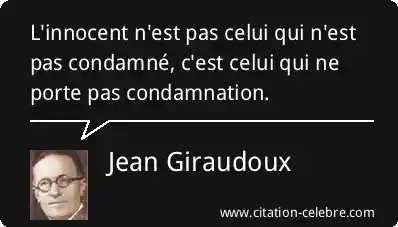 Citation Jean Giraudoux porte : L'innocent n'est pas celui qui n'est pas condamné, c'est celui...